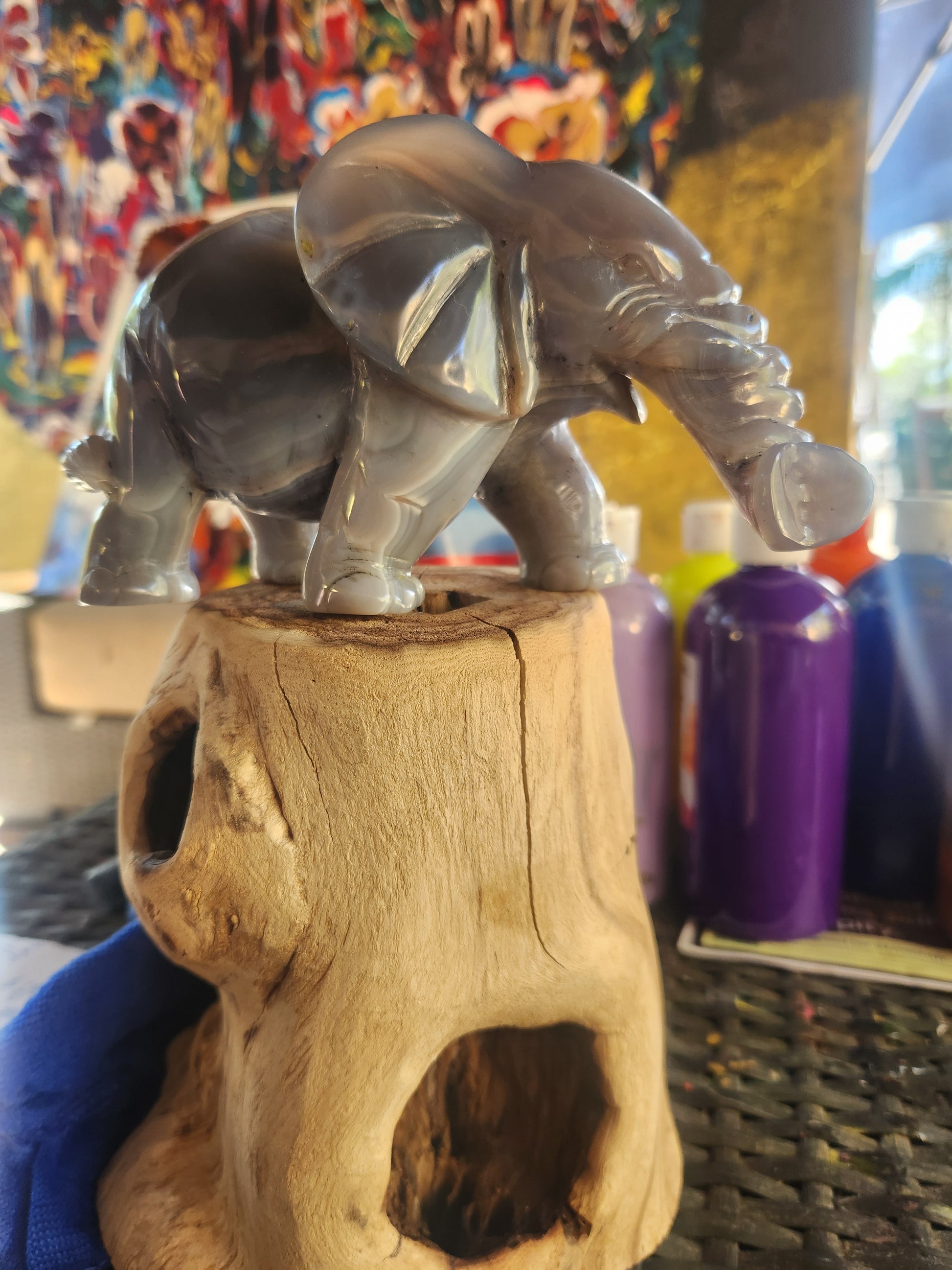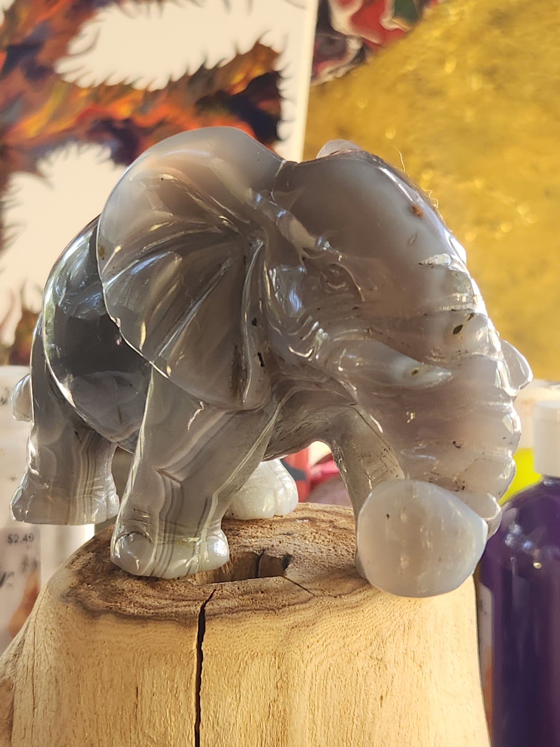 Elephant carved volcanic agate with uv reaction butiful looking gray